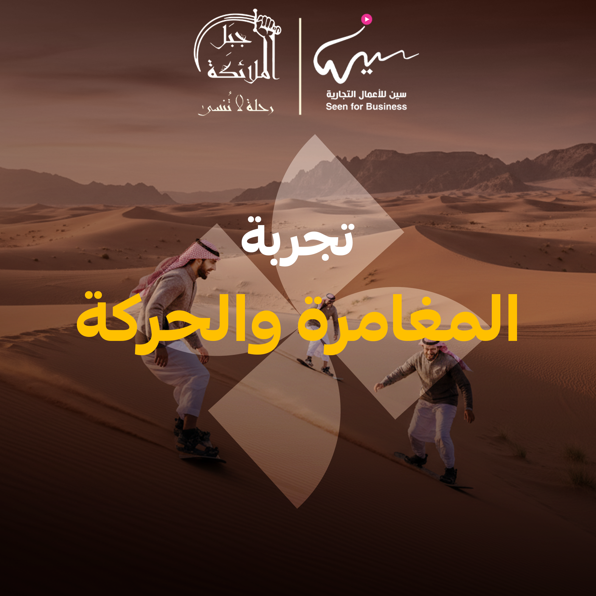 • هناك خيارين اما العودة للفعالية بسيارة الدفع الرباعي او النزول من القمة عبر التزلج بلوح التزلج لارض المشروع.